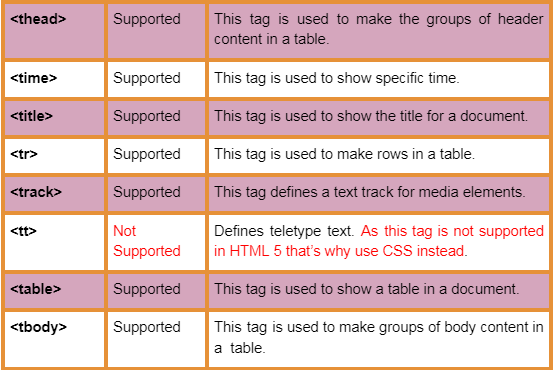 Note: In the HTML tags list there is not any tag that starts with G, J,  W, X, Y, and Z.